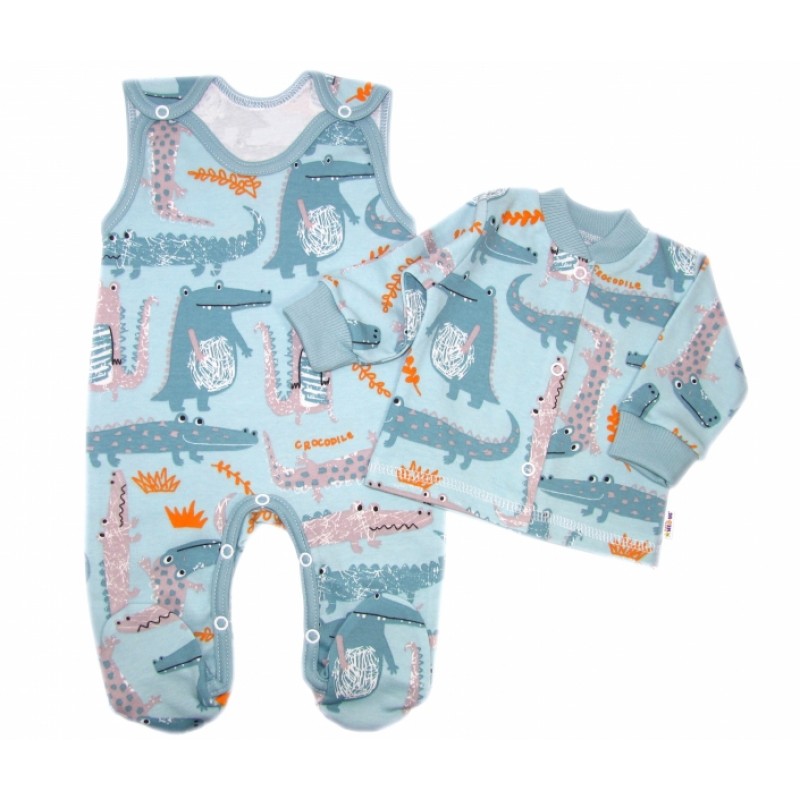 Baby Nellys 2-dielna sada, bavlnené dupačky s košieľkou Krokodýl Eda, mint