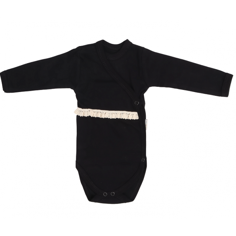 Mamatti Dojčenské body s čipkou, zapínanie bokom, Mašle - černé