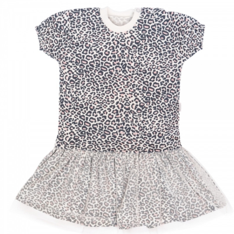 Mamatti Dojčenské šaty s tylom, kr. rukáv, Gepardík, biele vzorované, veľ. 80