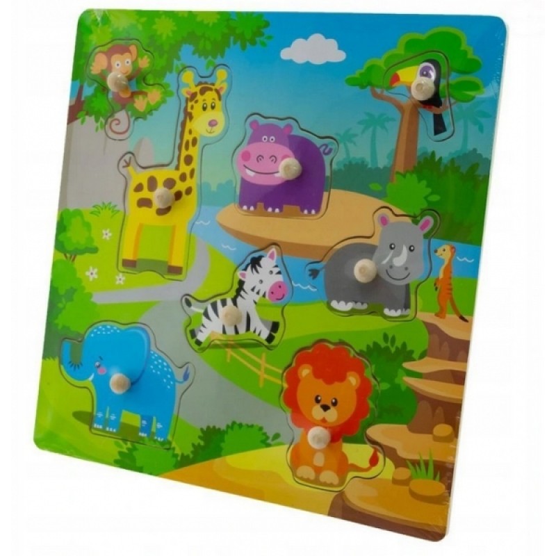 Drevené zábavné puzzle vkladacie 30x30cm - Zoo velké