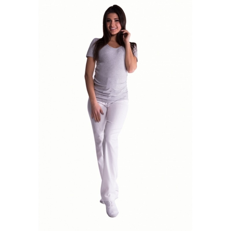 Be MaaMaa Bavlnené, tehotenské nohavice s regulovateľným pásom - biele, vel´. XXL