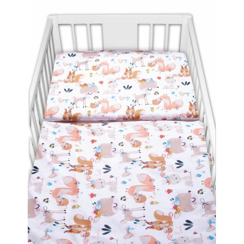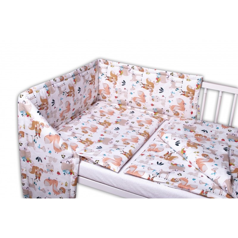 Baby Nellys 3-dielna sada Mantinel s obliečkami - Rozprávkové zvieratká - biela