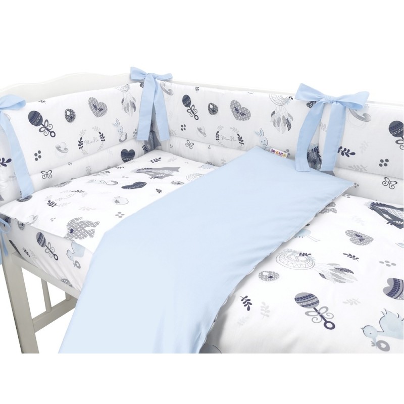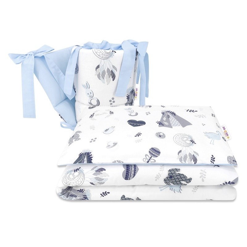 BABY NELLYS 3-dielna sada mantinel s obliečkami, New Love Baby, modrá