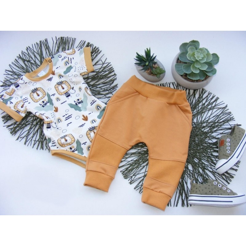G-baby 2-dielna sada body kr. rukáv, tepláčiky Lion - horčicová, veľ. 92