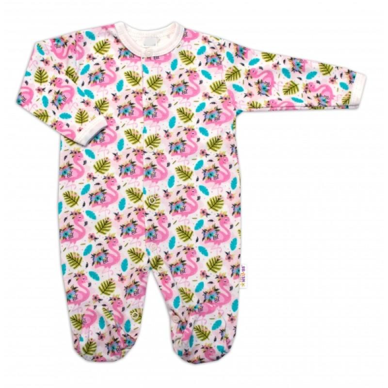Baby Nellys Dojčenský overal zapínanie uprostred, Plameniak - biela/ružová, veľ. 62
