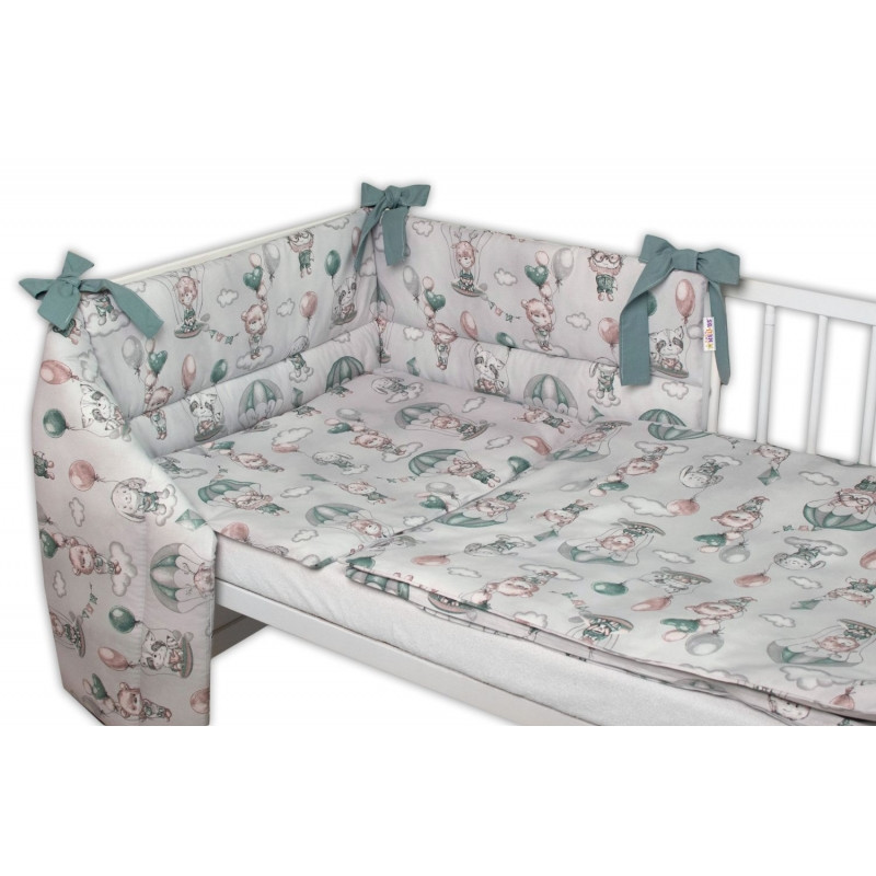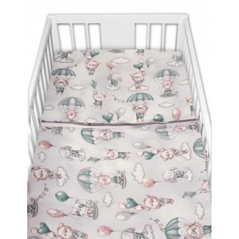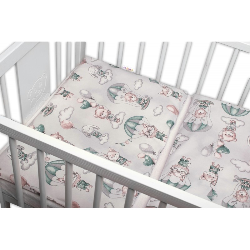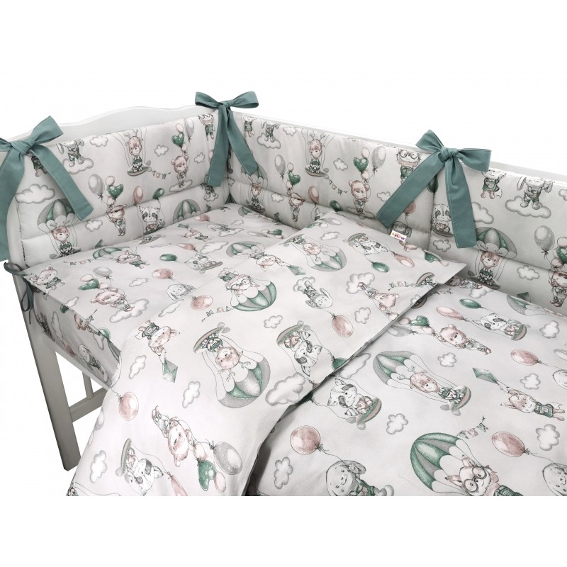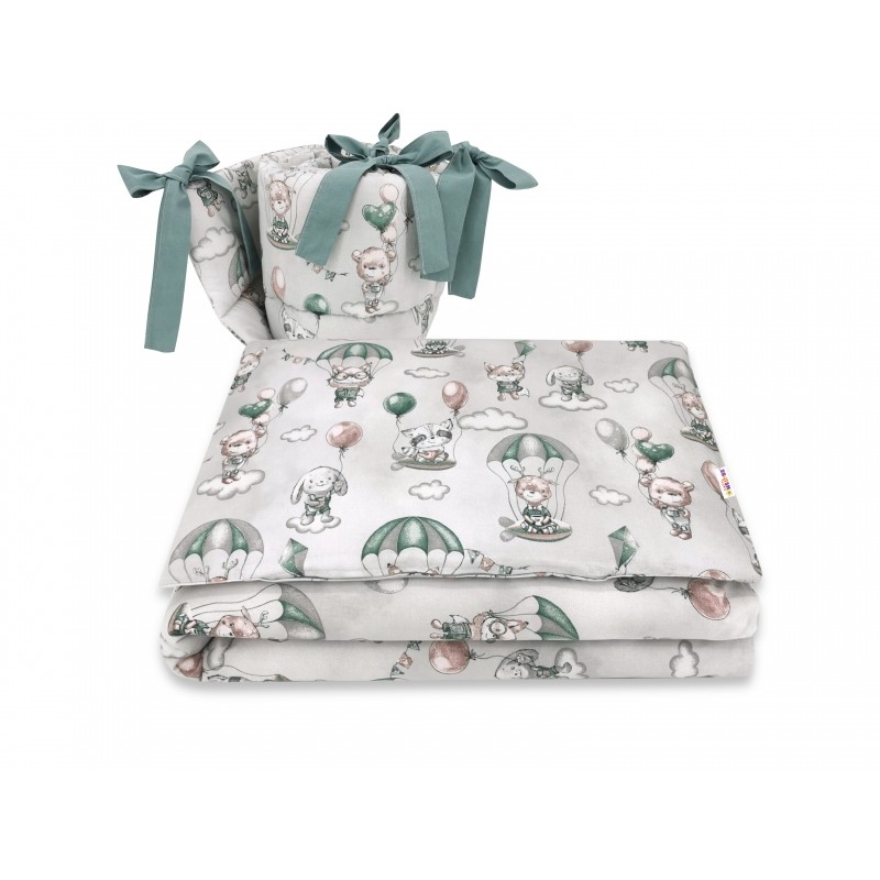 BABY NELLYS 3-dielna sada mantinel s obliečkami, Lietajúce zvieratká, zelená, 135x100 cm