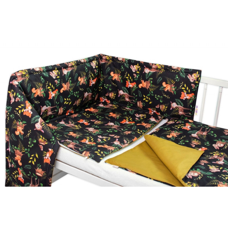 Baby Nellys 3-dielna sada Mantinel s obliečkami, Baby Friends, čierna/zelená