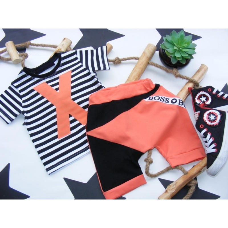 G-baby 2-dielna sada tričko kr. rukáv, kraťasky New Boss X - prúžok, tehlová, veľ. 110