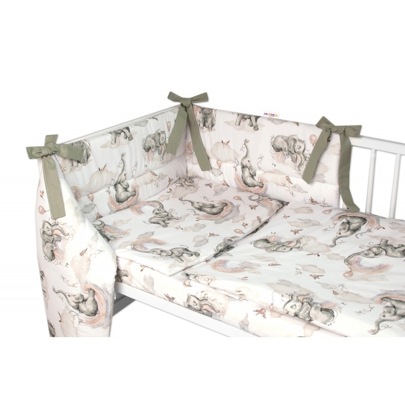 BABY NELLYS 3-dielna sada mantinel s obliečkami, Slon a Dúha, biela/sivá