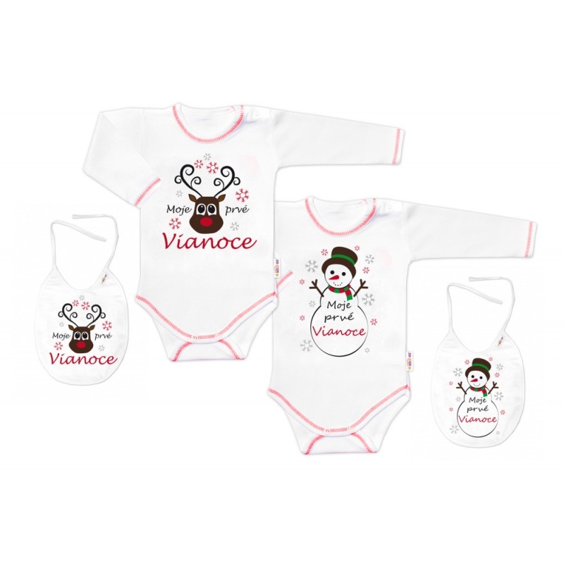 Baby Nellys Body dlhý rukáv Moje prvé Vianoce, Snehuliak, biele, veľ. 86