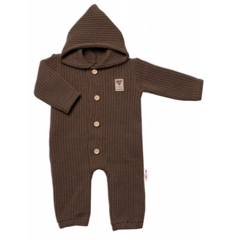 Baby Nellys Pletený overálok s kapucňou a gombíkmi Hand Made, hnedý