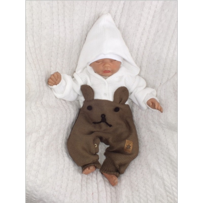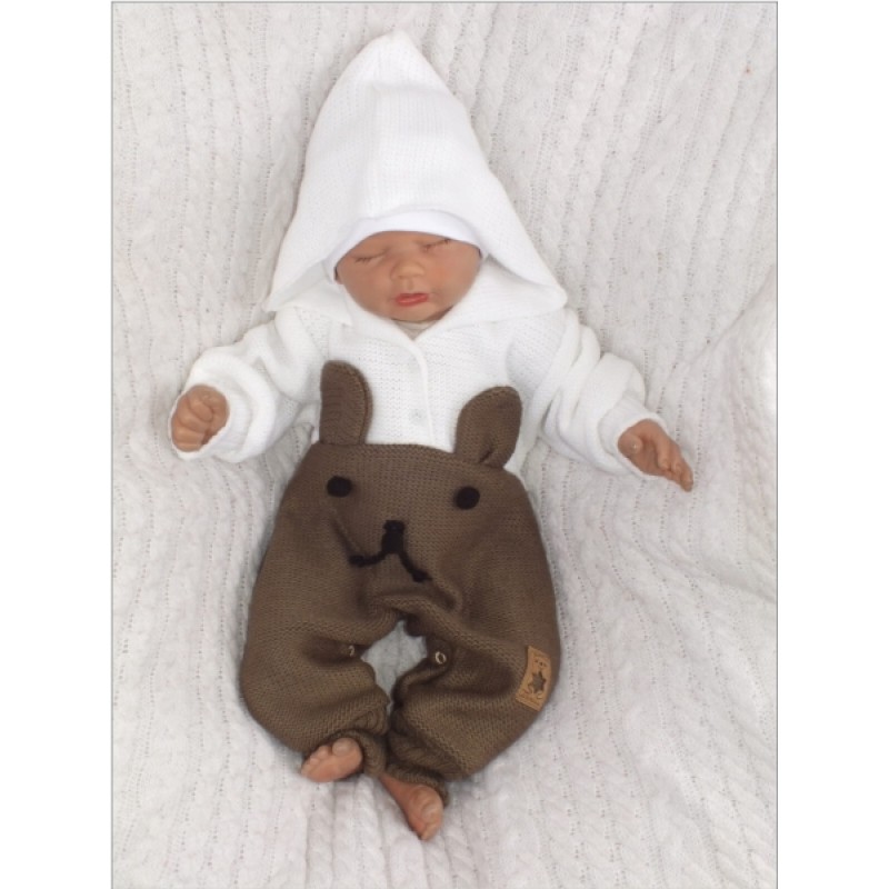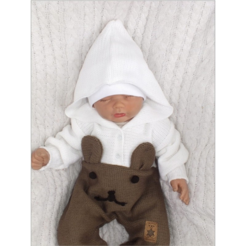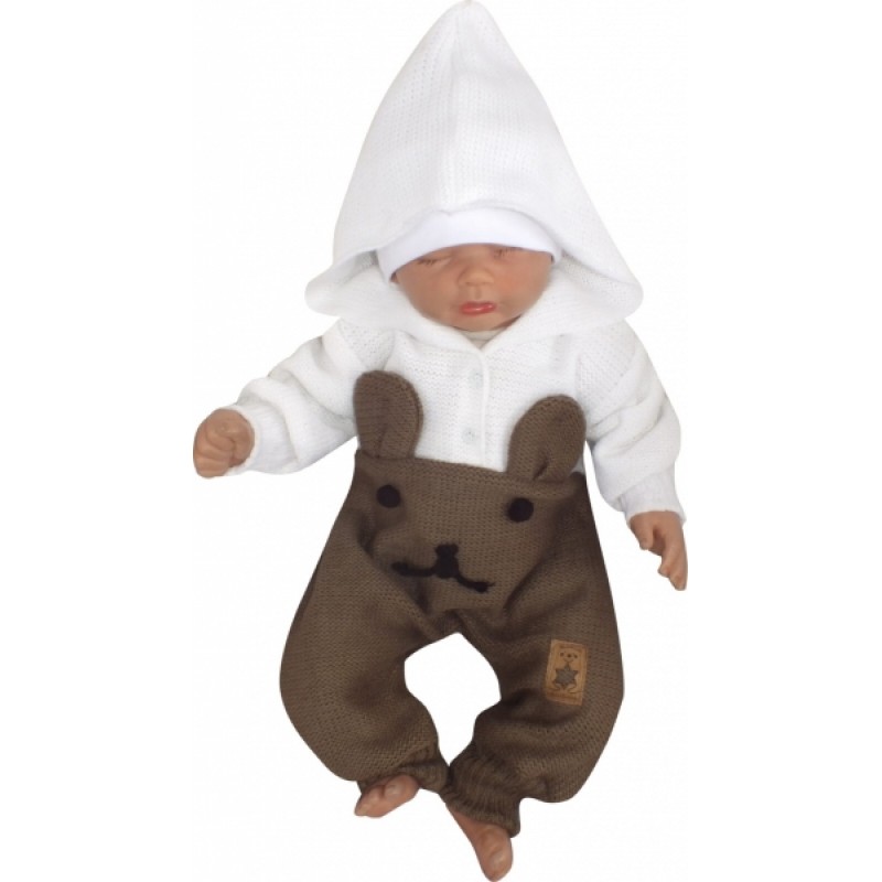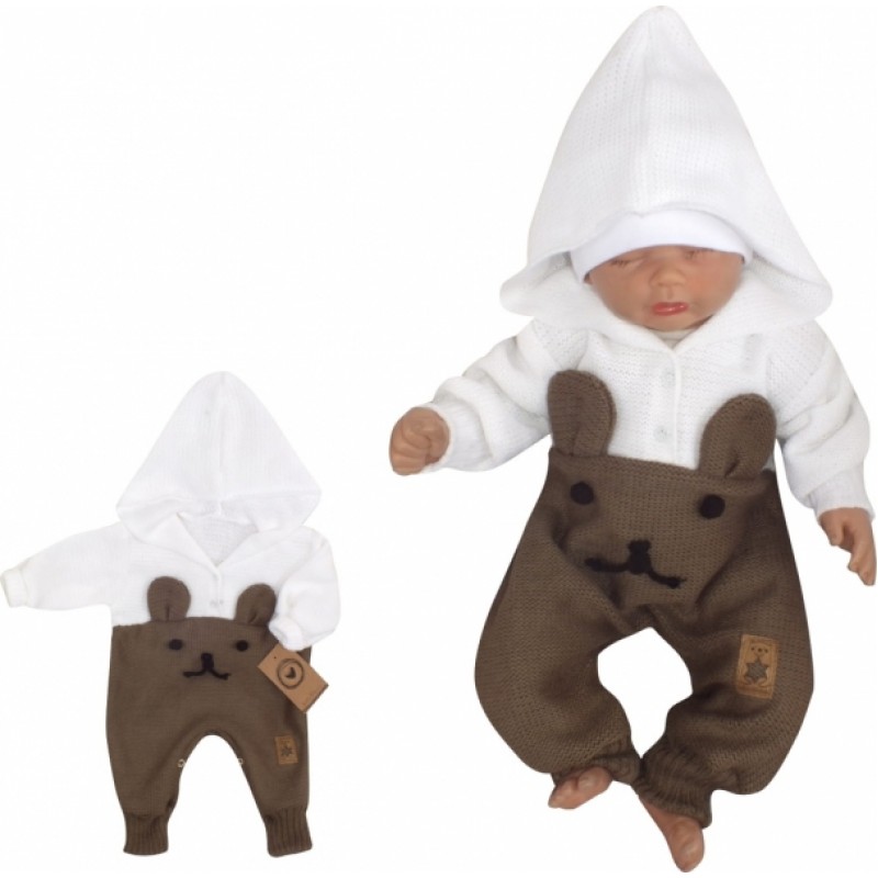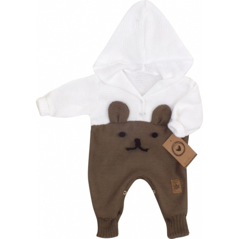 Z&Z Pletený detský overálek s kapucňou Macko, hnedý/biely, veľ. 86