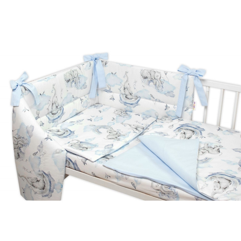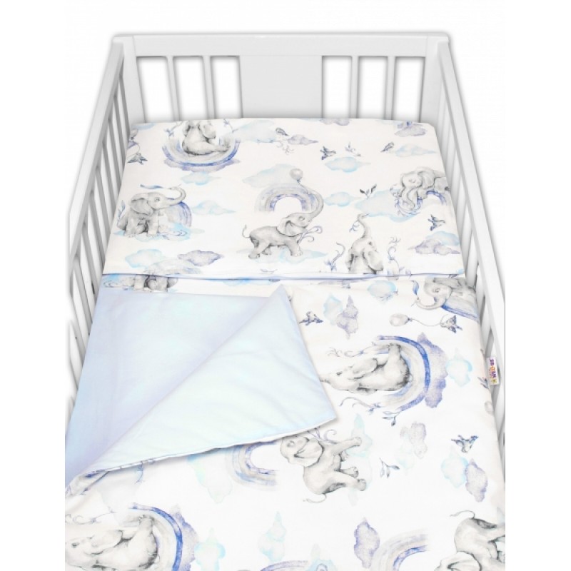 3-dielna sada mantinel s obliečkami Baby Nellys, Slon a Dúha, modra/biela, 135 x 100 cm
