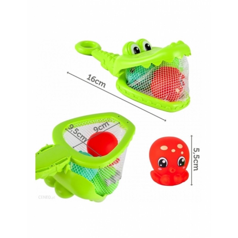 Súprava do kúpeľa Krokodíl, sieťka + 3 zvieratká, Tulimi, zelená