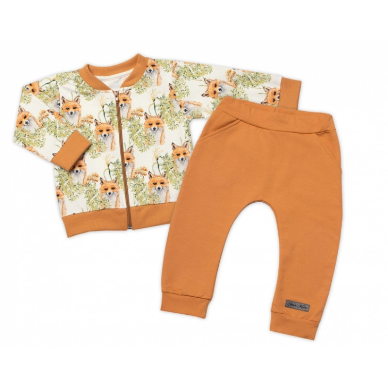 Štýlová bavlnená tepláková súprava G-baby, Líšky - horčicová
