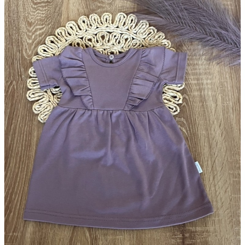 Bavlnené šaty s riasením, kr. rukáv, Puntík, Mamatti, slivkové, veľ. 104/110