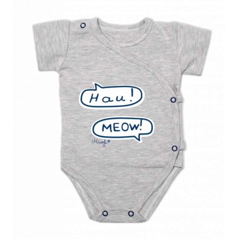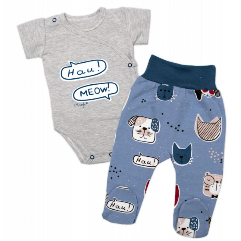 2-dielna sada body zap. bokom +polodupačky Psík a Mačička Mrofi, sivá/modrá