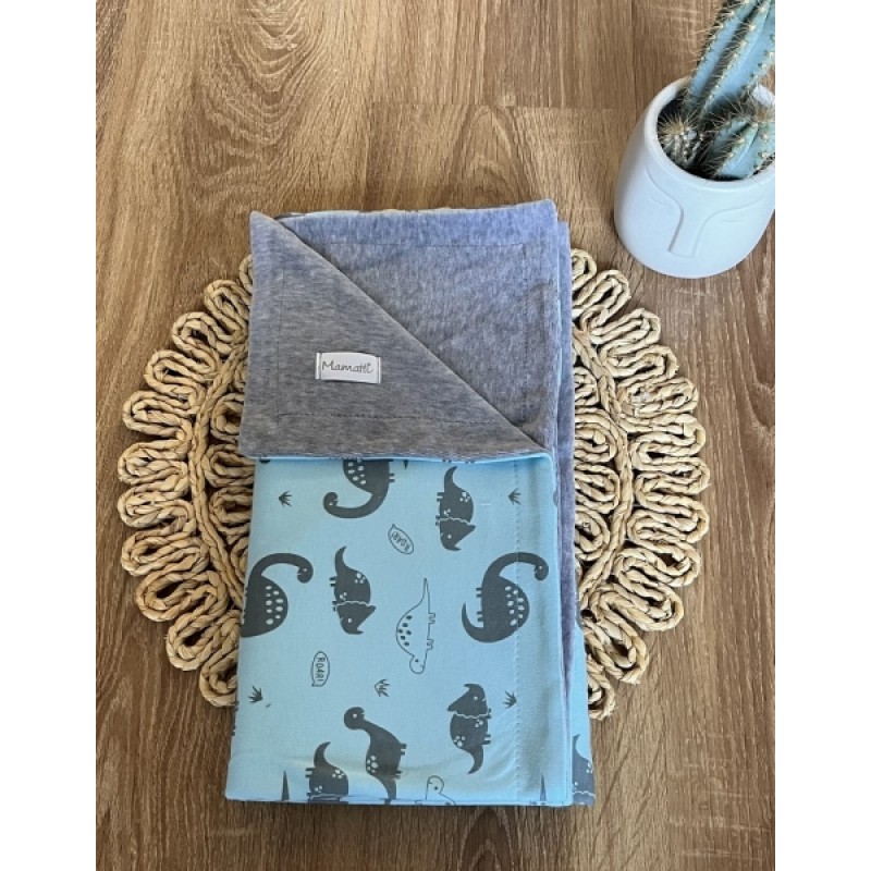 Detská obojstranná deka Mamatti, bavlna/velvet, 80 x 90 cm, Dino park - modrá/šedá