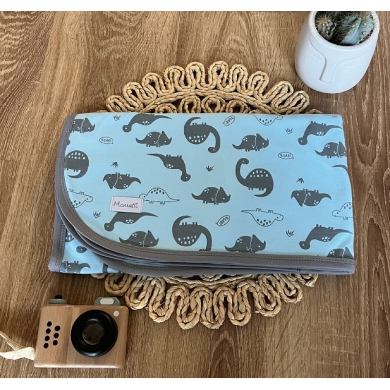Detská obojstranná bavlnená deka, Mamatti 80 x 90 cm, Dino park - modrá s potlačou