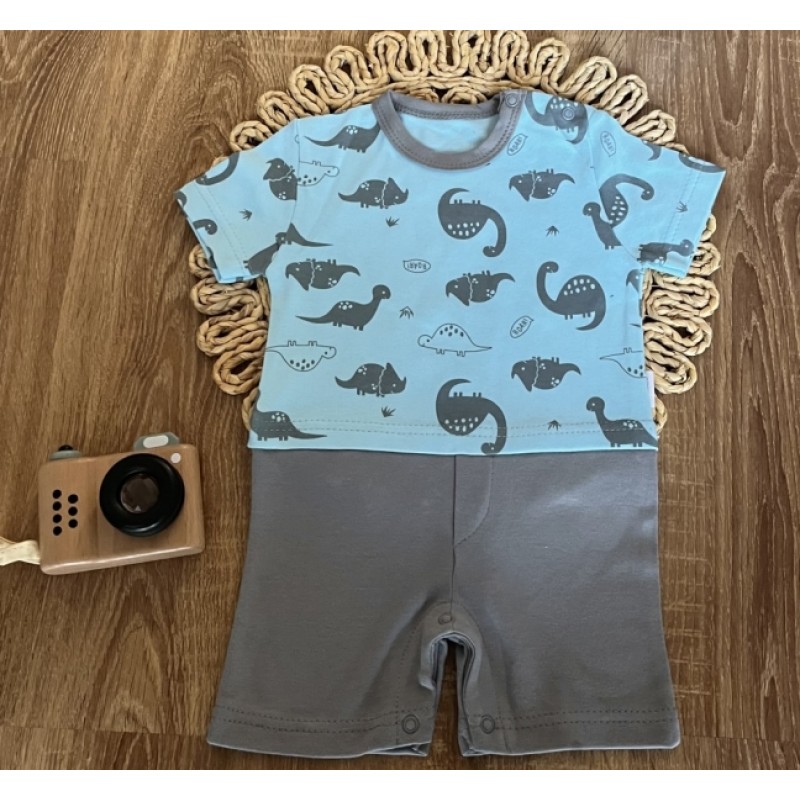Body s nohavičkami Mamatti, Dino park - modrá s potlačou/sivá