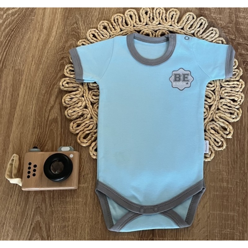 Dojčenské body, kr. rukáv Mamatti, zap. u krku, Dino park - modré, veľ. 74