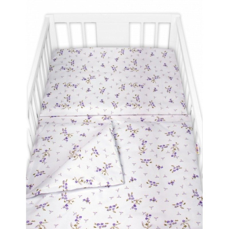 Mantinel s obliečkami, 3dielna sada Levanduľa, Baby Nellys, biela/fialová, 135x100 cm