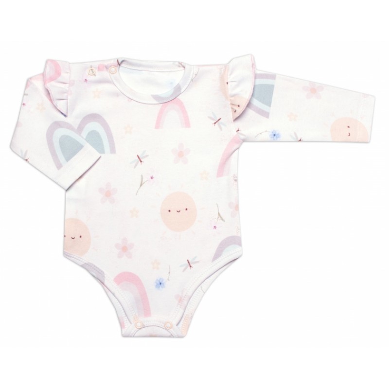 Body dl. rukáv s volánikom, bavlna, zapínanie pri krku Mrofi, Rainbow - biele veľ. 80