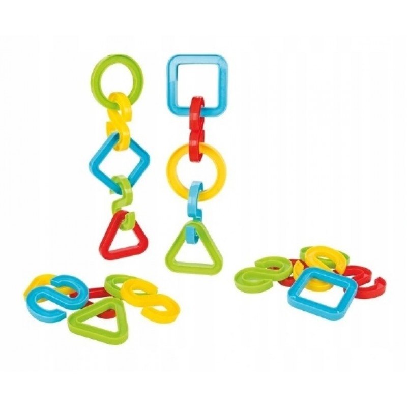 Spojením medzi sebou tvarmi vytvoríte farebný reťaz ľubovoľnej dĺžky. Reťaz možno použiť ako prívesok, napr. Na hračky alebo iné detské poklady. Dieťa navyše môže triediť položky podľa farby alebo tvaru.