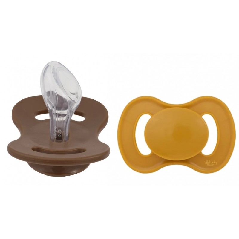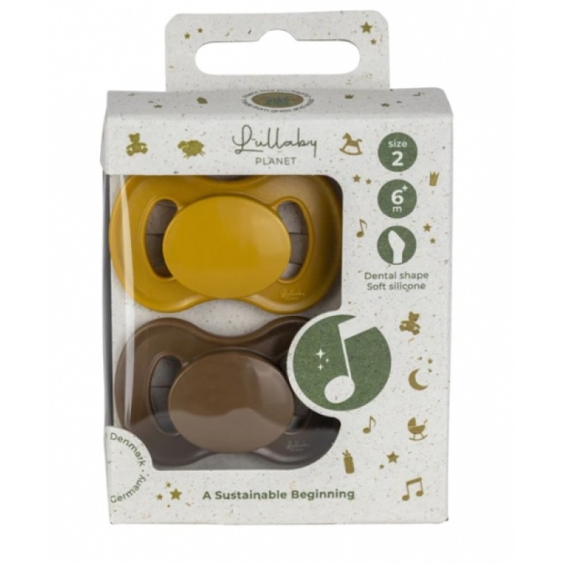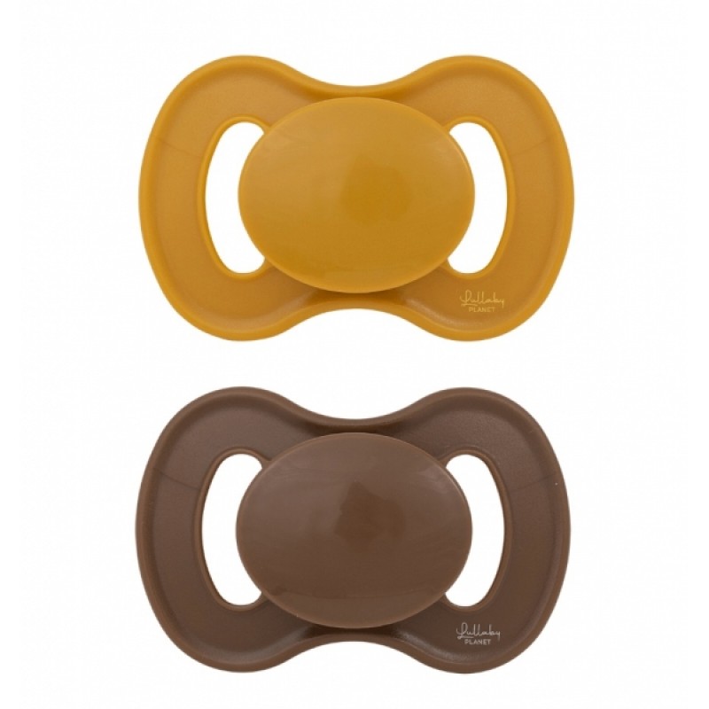 Cumlík, ortodontický silikón, 2ks, Lullaby Planet, 6m+, hnedá/horčica