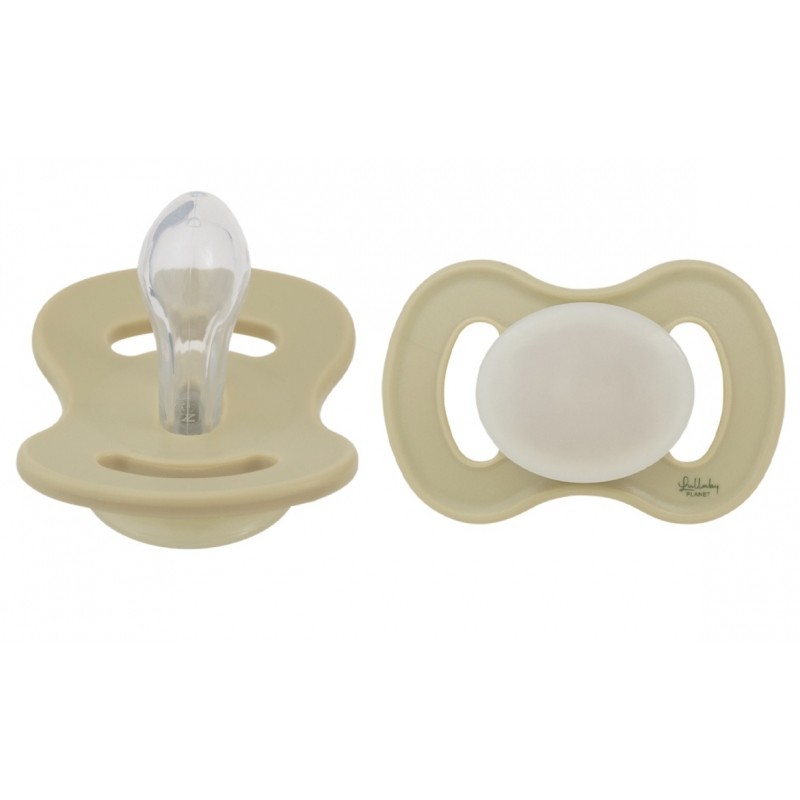 Cumlík, silikón, symetrický, nočný-svietiaci, 2ks, Lullaby Planet, 0-6m, oliva
