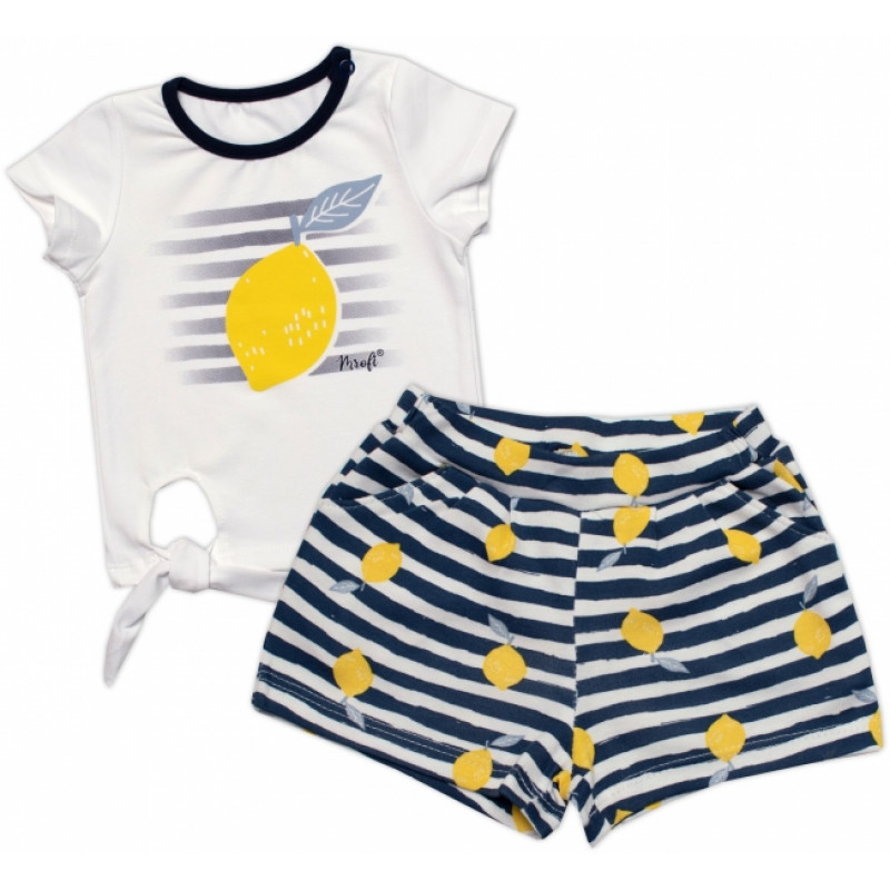 Dievčenské tričko+kraťasy 2D sada, Citrónky, Mrofi, biela/modrá, veľ. 74