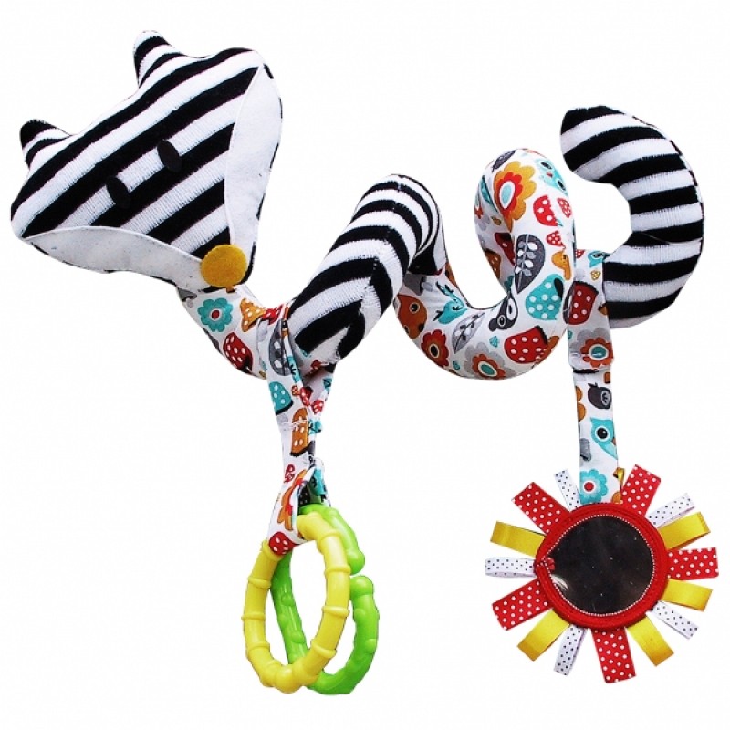 Hencz Toys Edukačná hračka Hencz s hrkálkou a zrkadlom - LIŠKA - špirála -bielo-čierna