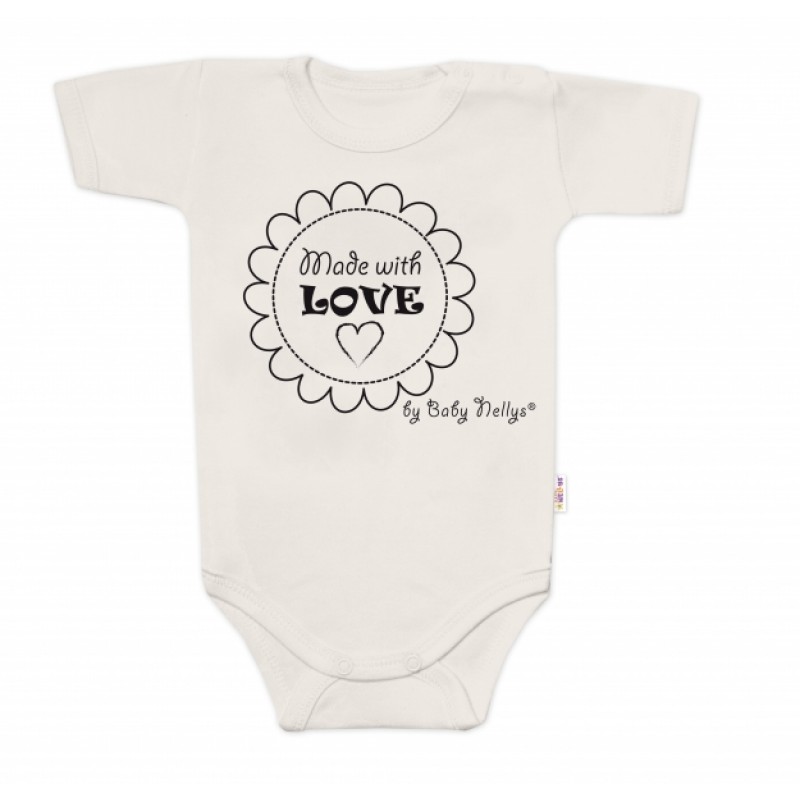 Body krátky rukáv Baby Nellys, Made with love, béžové, veľ. 68