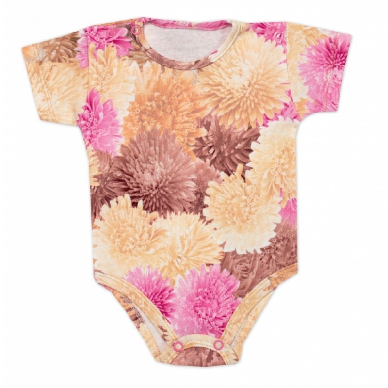 Body kr. rukáv Astry, bavlna, zapínanie pri krku, Mrofi, ružová/ecru, veľ. 86