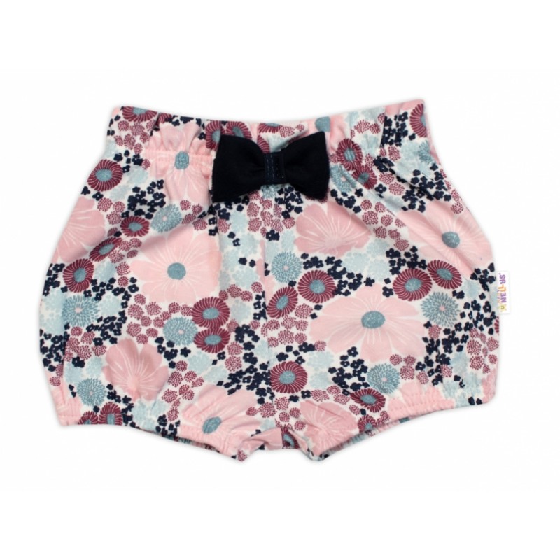 Kraťasky s mašličkou Baby Nellys, Blooming Flowers, bavlna, ružové, veľ. 98
