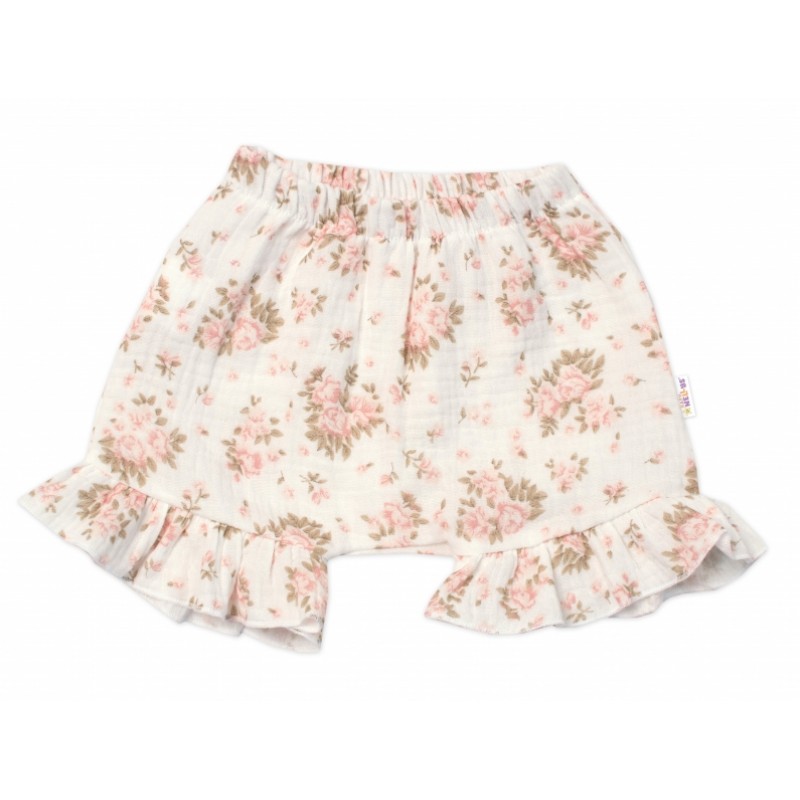 Zavinovacie body, kraťasky + čelenka, mušelín, Pivonky, Baby Nellys, smotanové, veľ. 80