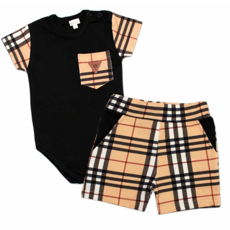 Body kr. rukáv + kraťasky s vreckami 2D sada, Kocka G-baby, čierna