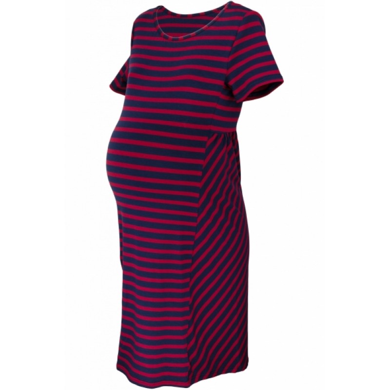 Be MaaMaa Tehotenské prúžkované šaty s Kr. rukávom - granát/bordo, vel´. L