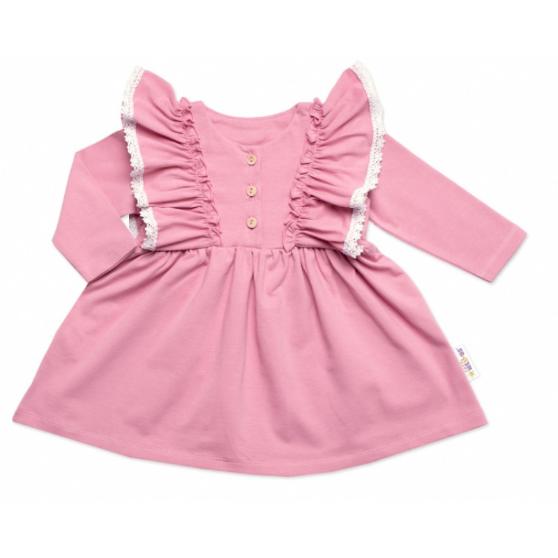 Dojčenské šaty dlhý rukáv s volánikmi Amálka, bavlna, Mrofi, púdrovo ružové, veľ. 92