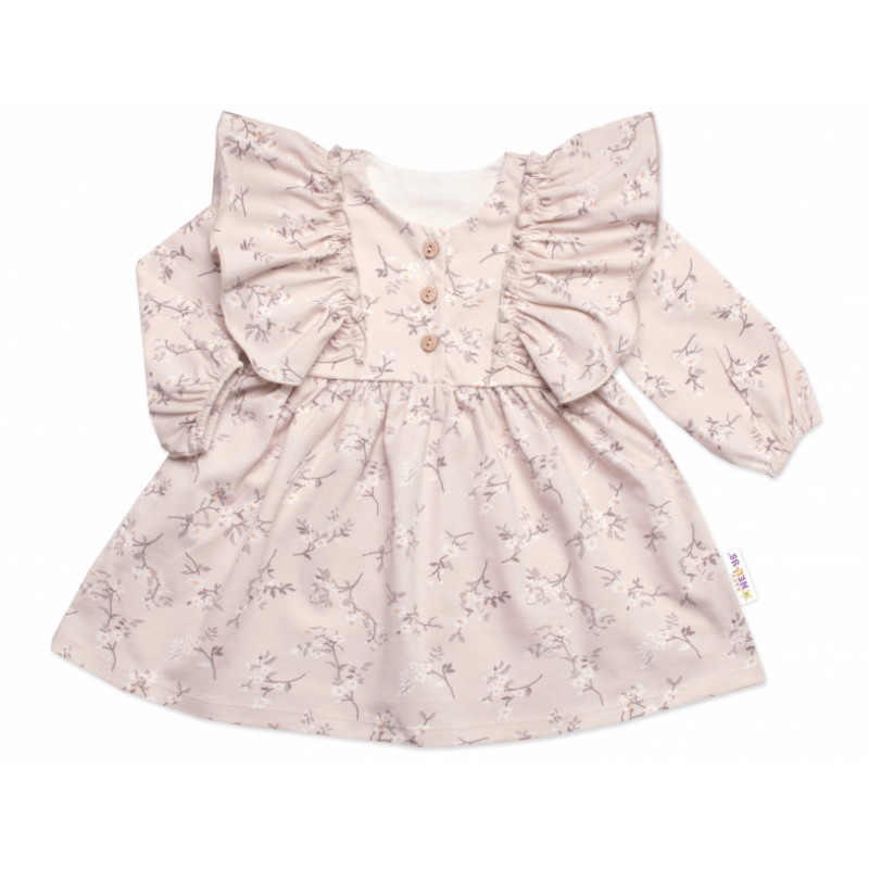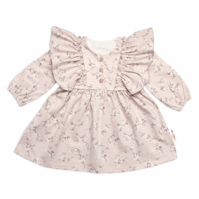 Dievčenské šaty dlhý rukáv s volánikmi Sára, bavlna, Mrofi, cappucino, veľ. 92