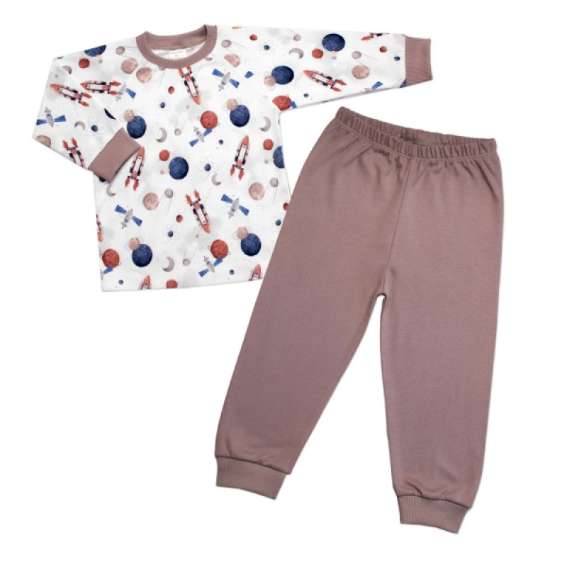 Detské pyžamo 2D sada, tričko + nohavice, Cosmos, Mrofi, béžová/biela, veľ. 116