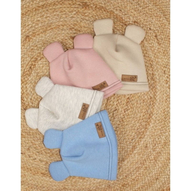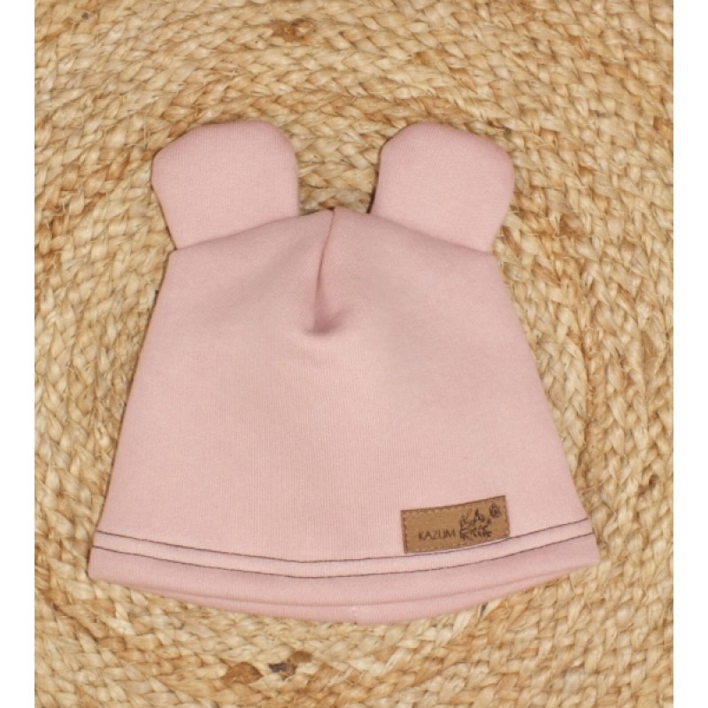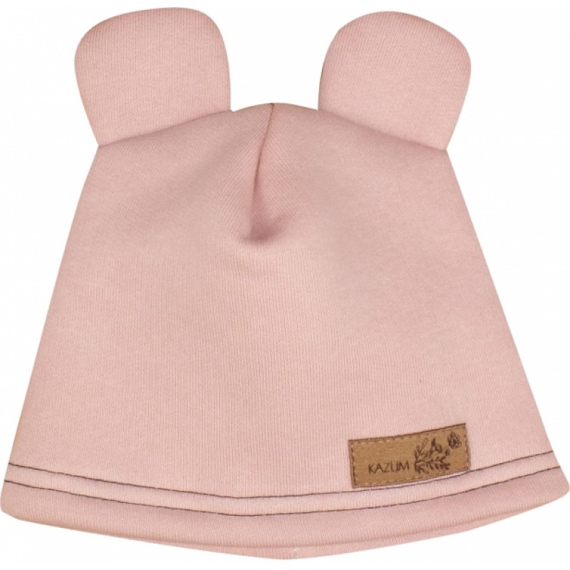 Teplá detská čiapka Kazum, bavlnená s uškami, pudrová, veľ. 68/74
