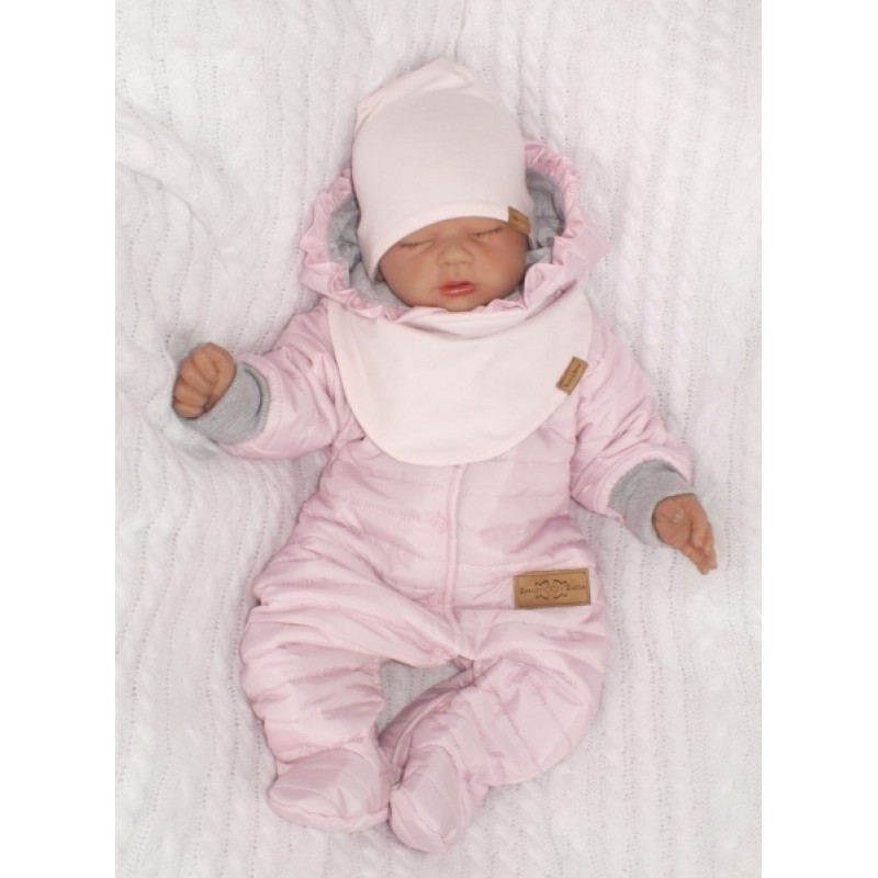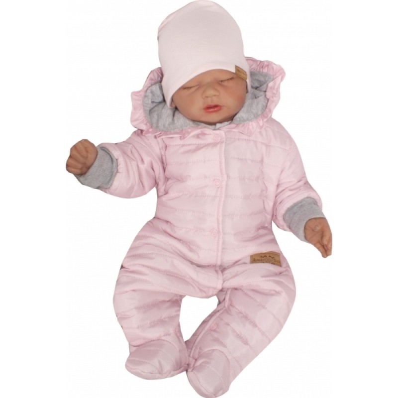 Z&Z Prešívaný dvojvrstvový overálok s kapucňou a volánikom, sv. ružový, veľ. 86