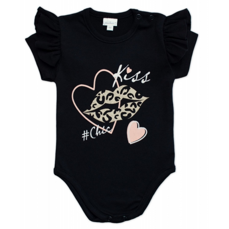 G-baby Dojčenské body s volánikom Kiss - čierne, veľ. 92