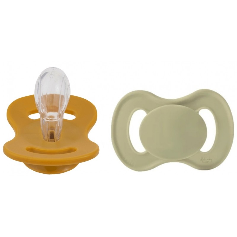 Cumlík, silikón, symetrický, 2ks, Lullaby Planet, 0-6m, oliva/horčica