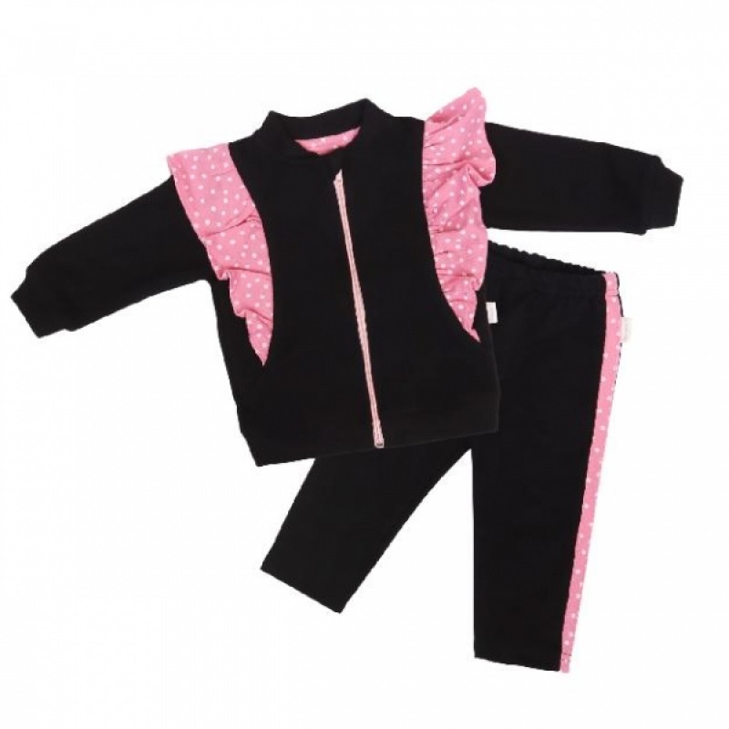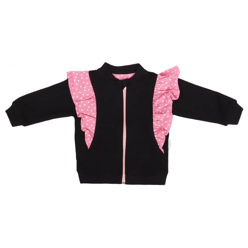Mamatti Detská tepláková súprava zapínanie na zip Princezna Bodka - čierna s volánkmi