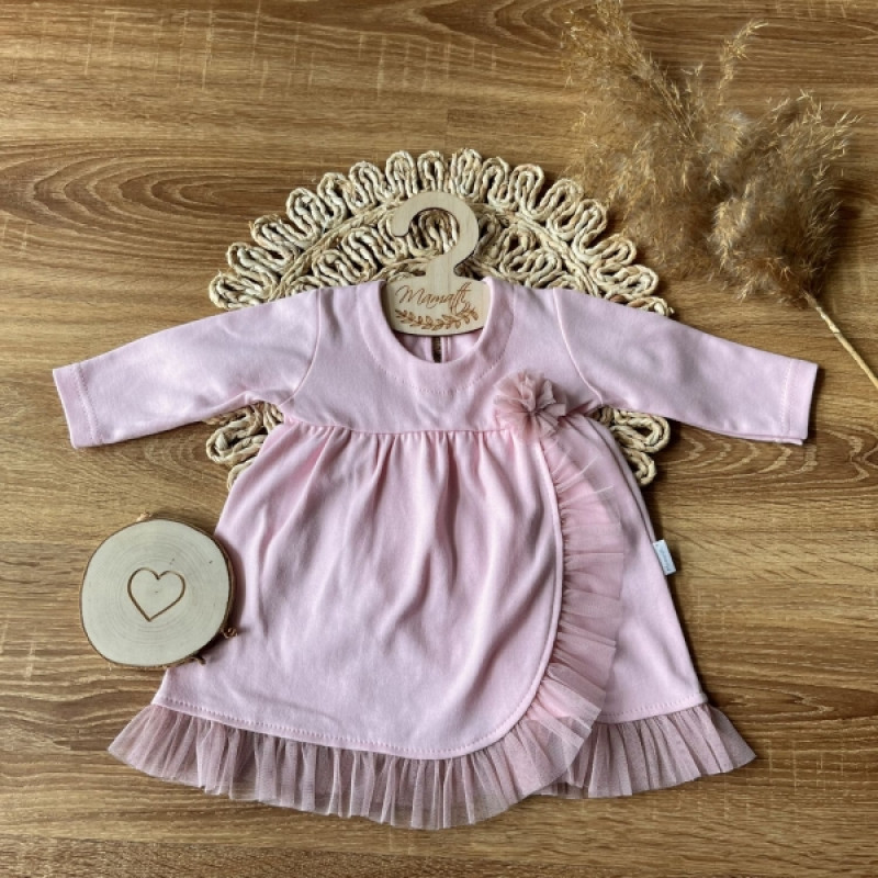 Šaty s tylovým lemom dl. rukáv, Srdce, Mamatti, ružové, veľ. 92