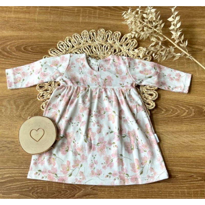 Detské šaty s dlhým rukávom, Kvety višní, Mamatti, smotanovo/púdrové, veľ. 92
