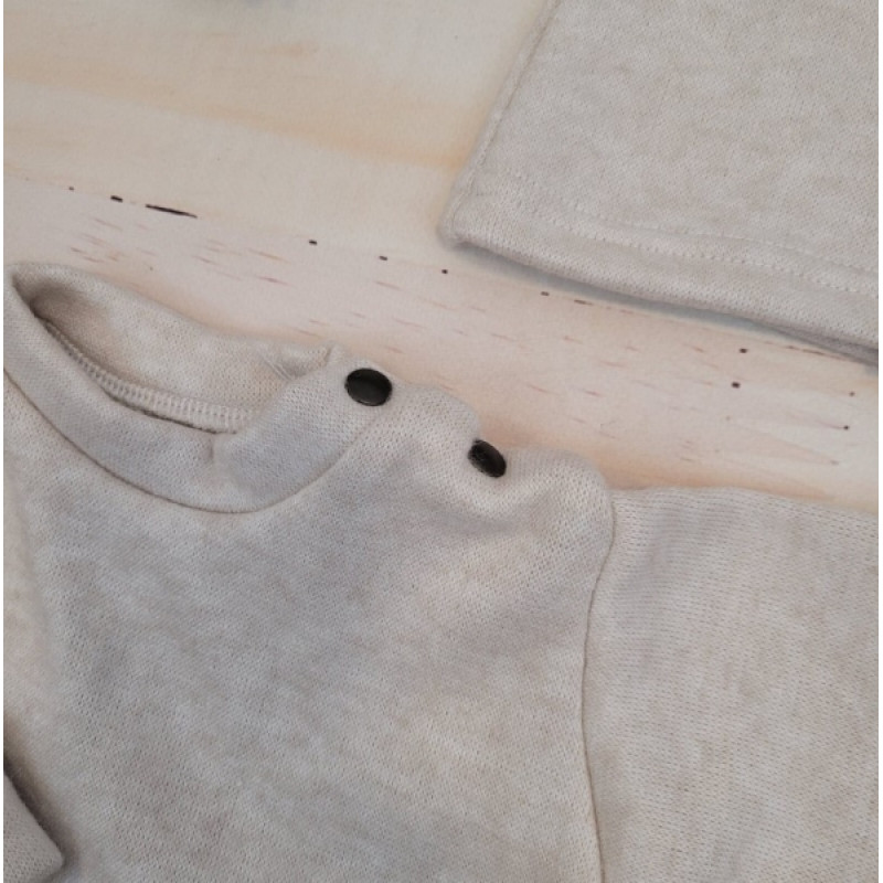 Táto oversize detská súprava je dokonalou kombináciou štýlu a pohodlia pre vašich najmenších. Skladá sa zo super módneho oversize svetra zapínaného pri krku, nohavíc, ktoré zaistia pohodlie a voľnosť pohybu po celý deň, a očarujúce čiapky s ušami.