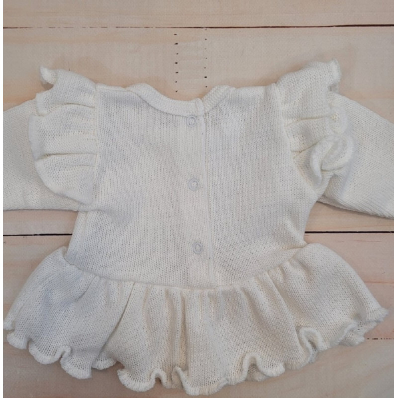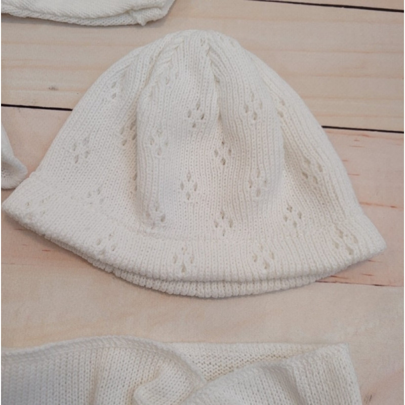 Pletená ažurková sada 4D, tunika, polodupačky, čiapočka + čelenka Kazum, biela, veľ. 68